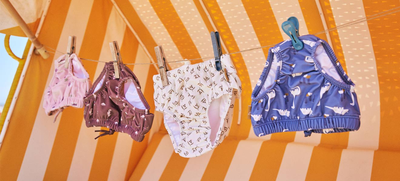 Hier findets du Bademode für kleine Wasserratten. Die von uns angebotenen Schwimmwindeln schützen sicher vor Auslaufen ohne dabei ein unangenehmes Nässegefühl zu verursachen. Für den angemessenen UV Schutz sorgen UV-Shirts und Hüte. So macht der Sommer Spaß!