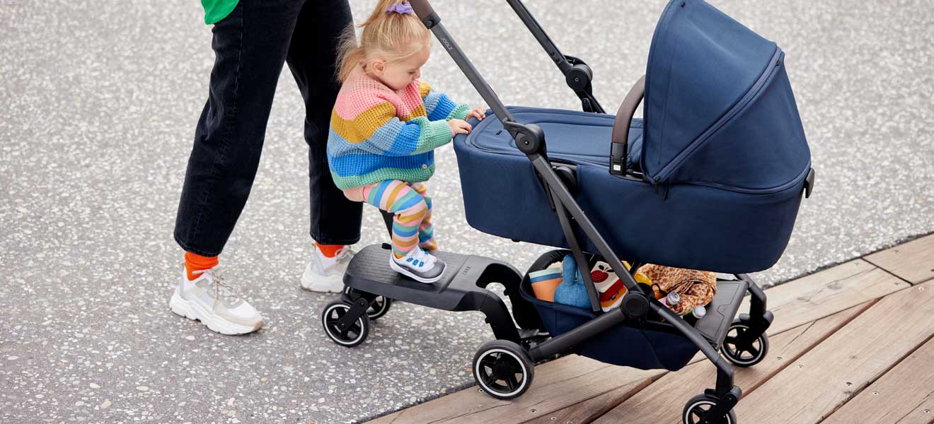 Ein Buggy Board für Ihr Kinderwagen ist sehr praktisch, wenn du mit zwei Kindern unterwegs bist. Das eine Kind kann so im Kinderwagen sitzen oder liegen und das andere Kind kann hinten am Kinderwagen auf dem Trittbrett stehen. So bleibst du auch mit zwei Kindern mobil und das zweite Kind muss nicht laufen.