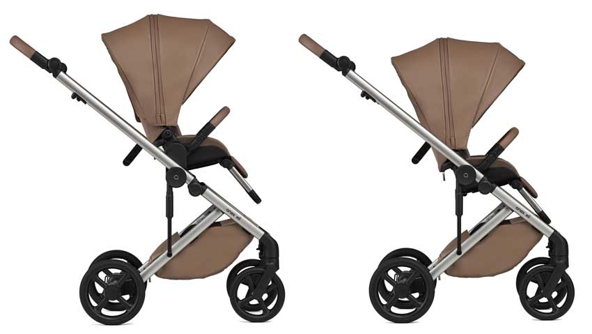 - platzsparend - der Rahmen des Kinderwagens lässt sich zusammenklappen und die Sitzeinheit in beide Richtungen platzieren.