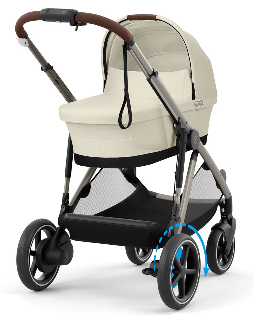 Der neue e-Gazelle S Kinderwagen eignet sich ideal ab Geburt deines Babys. Zu Beginn kannst du die Babywanne nutzen. Später, kannst du den Kinderwagen mit der Sitzeinheit verwenden. Zudem hast du mit dem Shopper eine weitere Möglichkeit viel zu verstauen.
