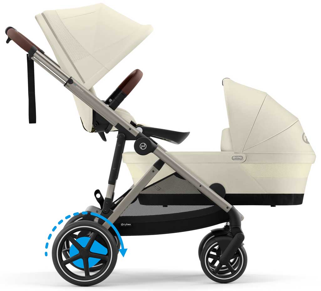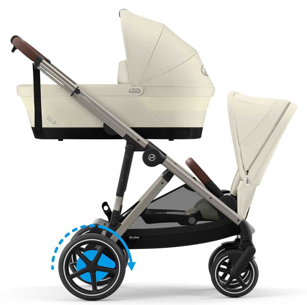 Du kannst diesen Kinderwagen nicht nur für ein Kind nutzen. Dieser Kinderwagen kann ebenfalls als Geschwisterkinderwagen verwendet werden. Dein Neugeborenes liegt bequem und gut geschützt in der Babywanne, hingegen das größere Kind in der Sitzeinheit der e-Gazelle sitzt. Die neue e-Gazelle passt sich deinen Anforderungen mit nur leichten Klicks immer an.