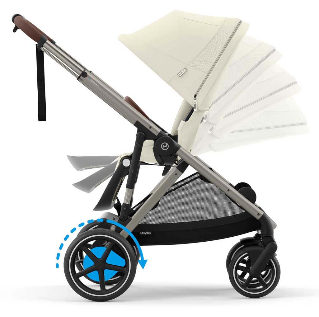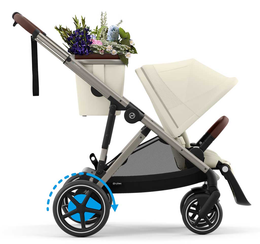 Der e-GAZELLE S Kinderwagen von Cybex gibt dir und deinem Alltag neue Leichtigkeit. Dank des E-Antriebs und Multi-Terrain-Supports bewältigst du mühelos auch hügeliges Gelände, für einen entspannten Ausflug für dich, deinem Kind und sein Geschwisterchen. Bergauf oder bergab hast du mit dem intuitiven Hebel am Schiebegriff immer volle Kontrolle über Geschwindigkeit und Antrieb. Die automatische Wiegefunktion bewegt den Kinderwagen automatisch vor und zurück und wiegt dein Kind sanft in den Schlaf, während du einen Moment für dich genießen kannst. Mit über 20 Konfigurationsmöglichkeiten passt sich der e-GAZELLE S flexibel an deine Bedürfnisse an, ganz gleich, ob du ein oder zwei Kinder dabeihast, und das in jeder Wachstumsphase. Die großzügige 23kg-Ladekapazität des Einkaufkorbs sowie des abnehmbaren Shoppers bietet ausreichend Platz für alles, was du unterwegs benötigst, und dank des E-Antriebs kommst du stets leicht voran.