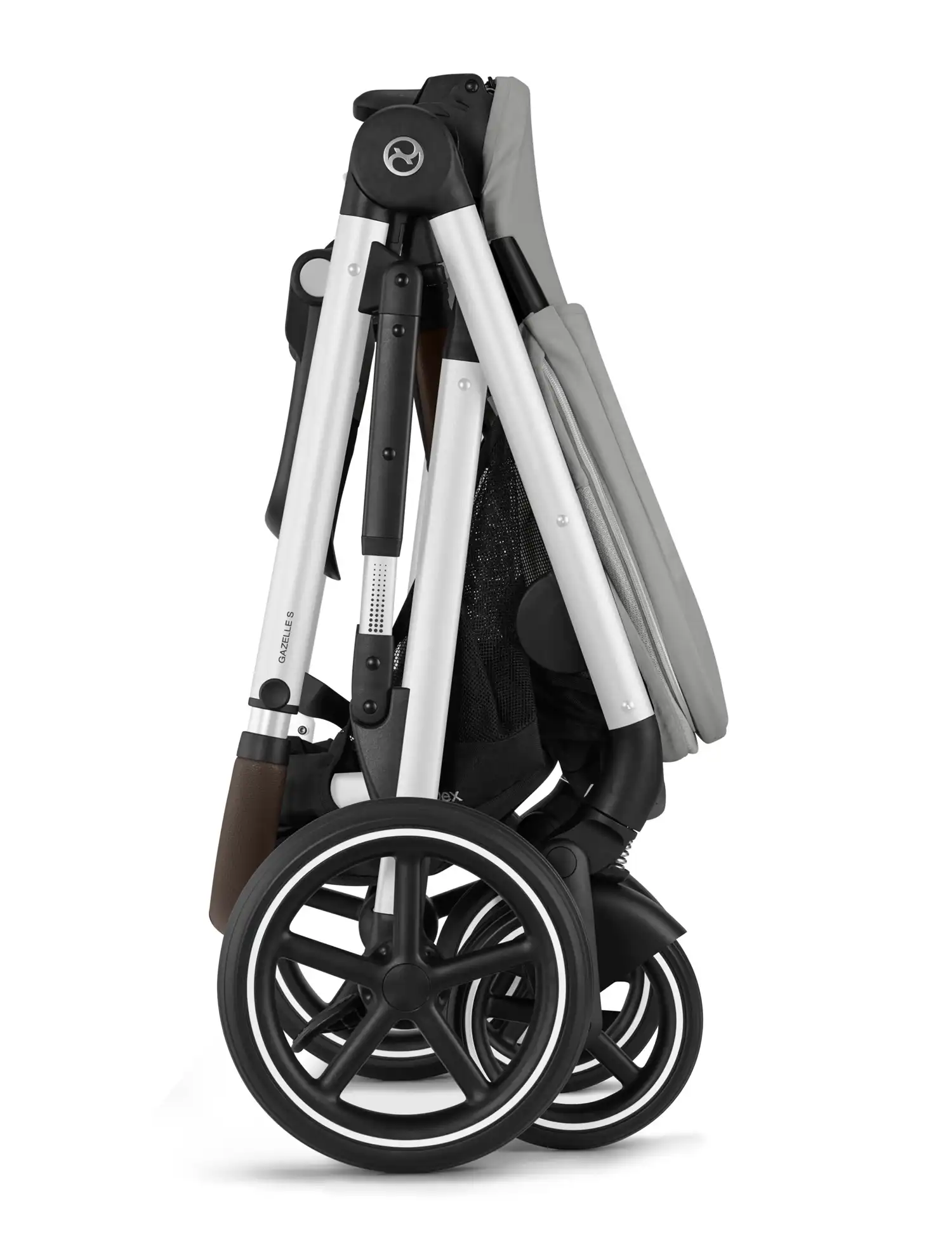 Trotz seiner Vielseitigkeit lässt sich der Gazelle S kompakt zusammenfalten – ideal für kleine Kofferräume oder begrenzten Stauraum zu Hause. Einfach transportieren, schnell aufklappen und los geht’s.