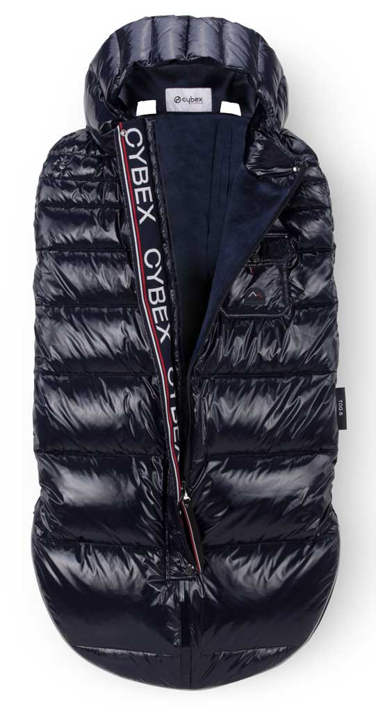 Der exklusiv entworfene Platinum Winter Fußsack ist mit kuschelweichen Daunen gefüttert, um einen ultrawarmen Kokon voller
