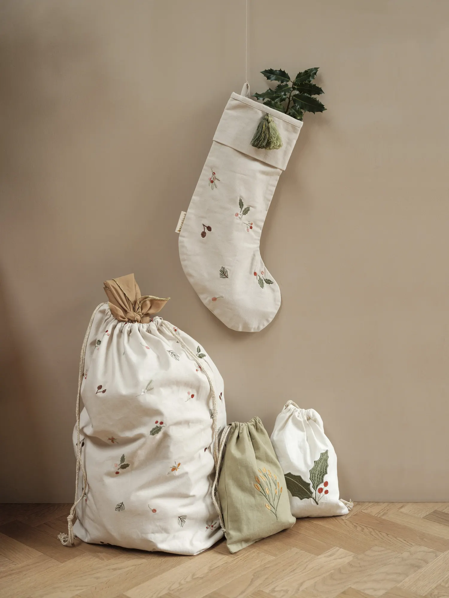 Die wunderschöne Geschenktüte mit Kiefernstickerei von Fabelab ist die umweltfreundliche Alternative zu herkömmlichem Geschenkpapier. Hergestellt aus 100 % Bio-Baumwolle und liebevoll bestickt, verbindet sie stilvolles Design mit Nachhaltigkeit.