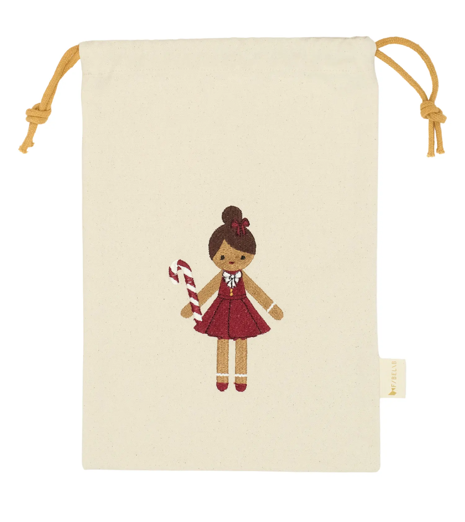 Diese liebevoll gestaltete Geschenktüte von Fabelab steckt voller Weihnachtszauber! Verziert mit einer süßen Lebkuchenmädchen-Stickerei auf weichem, hochwertigem Stoff, ist sie die perfekte Wahl, um kleine Weihnachtsgeschenke stilvoll und nachhaltig zu verpacken.
