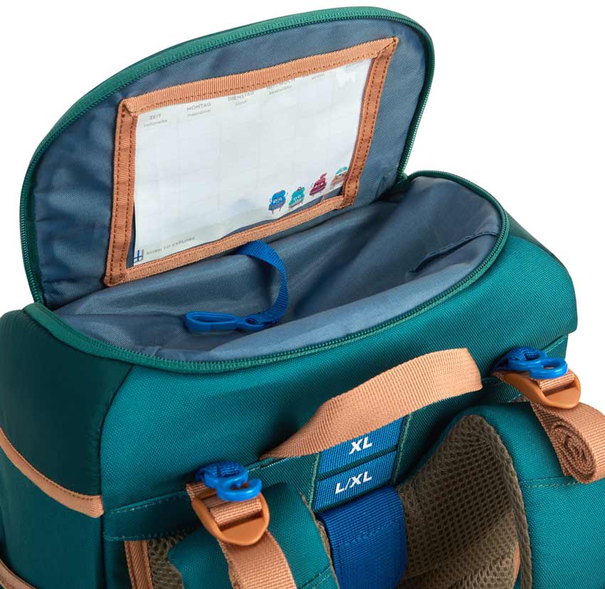 Buddy Eko Sport ist zudem gut durchdacht und ein wahres Platzwunder. In der separaten Fronttasche kann dein Schatz seine Lunchbox aufbewahren. Im Deckel versteckt sich ein transparentes Fenster für den Stundenplan sowie ein Schlüsselband. Der große Innenraum ist so unterteilt, dass dein kleines Schulkind stets den Überblick über die Schulutensilien behält.