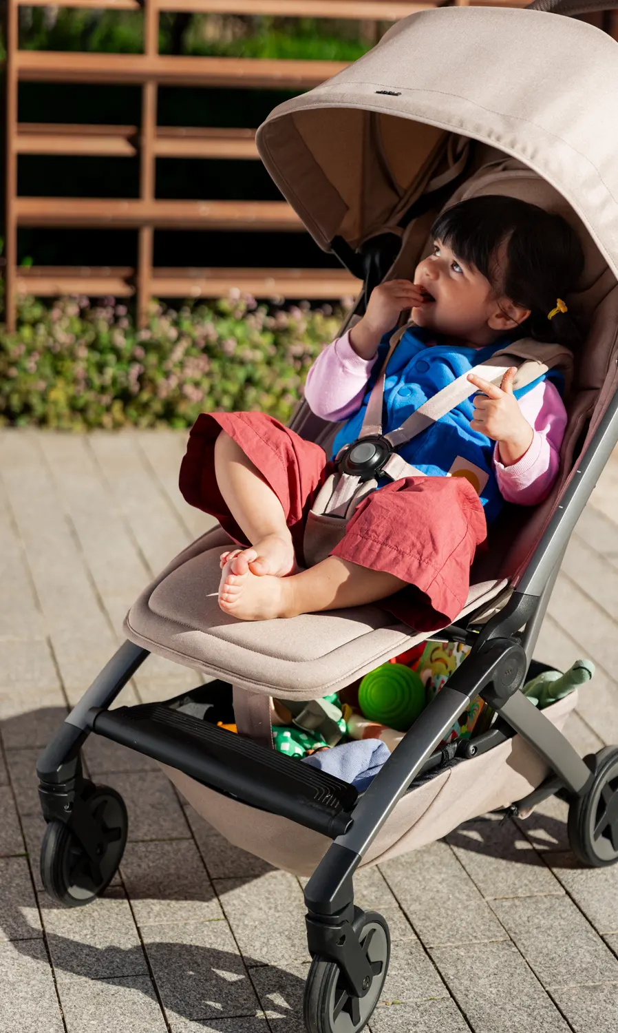 Mit dem Joolz Aer 2 bist du unglaublich praktisch unterwegs. Sein ultrakompaktes Faltmaß macht den Buggy zu einem idealen Reisebuggy. Doch sein Herzstück ist seine einhändige Bedienbarkeit, die dich zum wahren Multitaskingtalent macht.