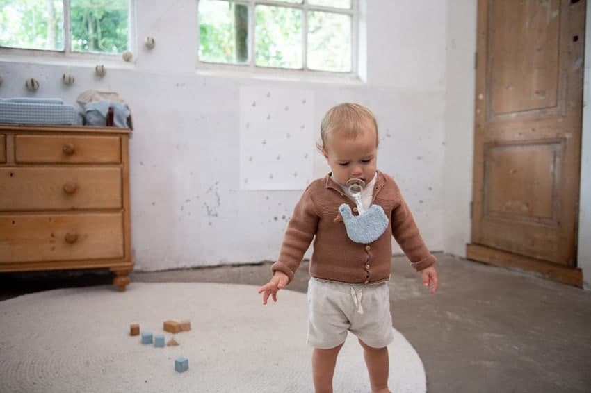 In dieser zuckersüßen Strickjacke wird dein kleiner Spatz nicht nur bezaubernd aussehen, dein Liebling wird es auch schön warm und kuschelig haben. Die Baumwollstrickjacke kommt mit Holzknöpfen, einen farblich abgegrenzten Saum und einem melierten Strickmuster, das kleine Flecken fast unsichtbar macht. Der Cardigan eignet sich auch perfekt für Neugeborene.