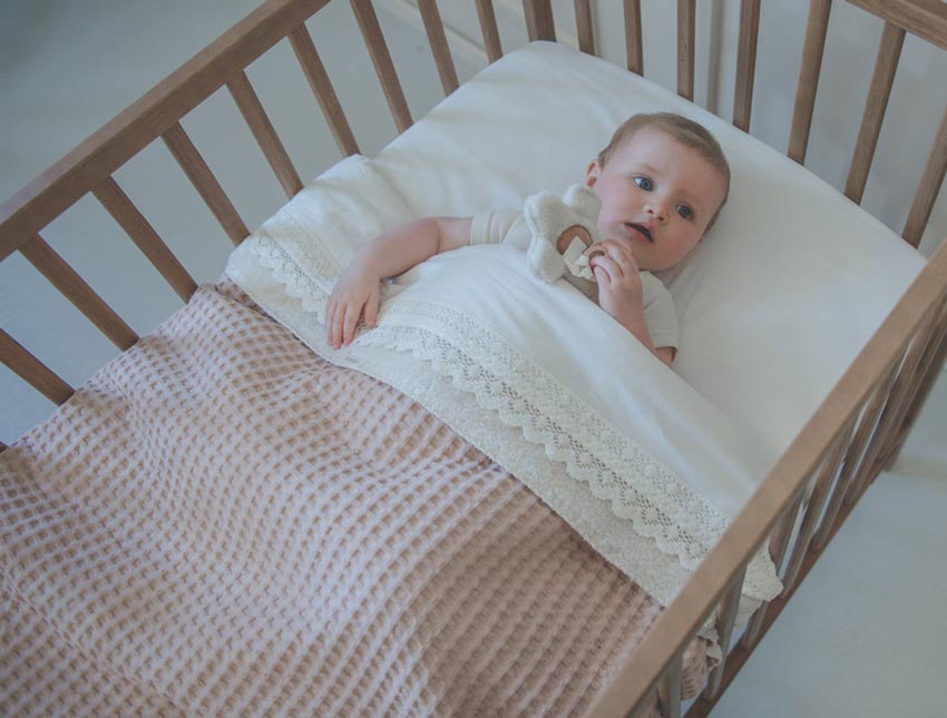 Die Babydecke Oslo ist eine wunderschöne dicke flauschige Decke mit Waffelmuster und einer kuschligen Teddyrückseite. Die kuschlige Decke passt perfekt in jedes Kinderbett.