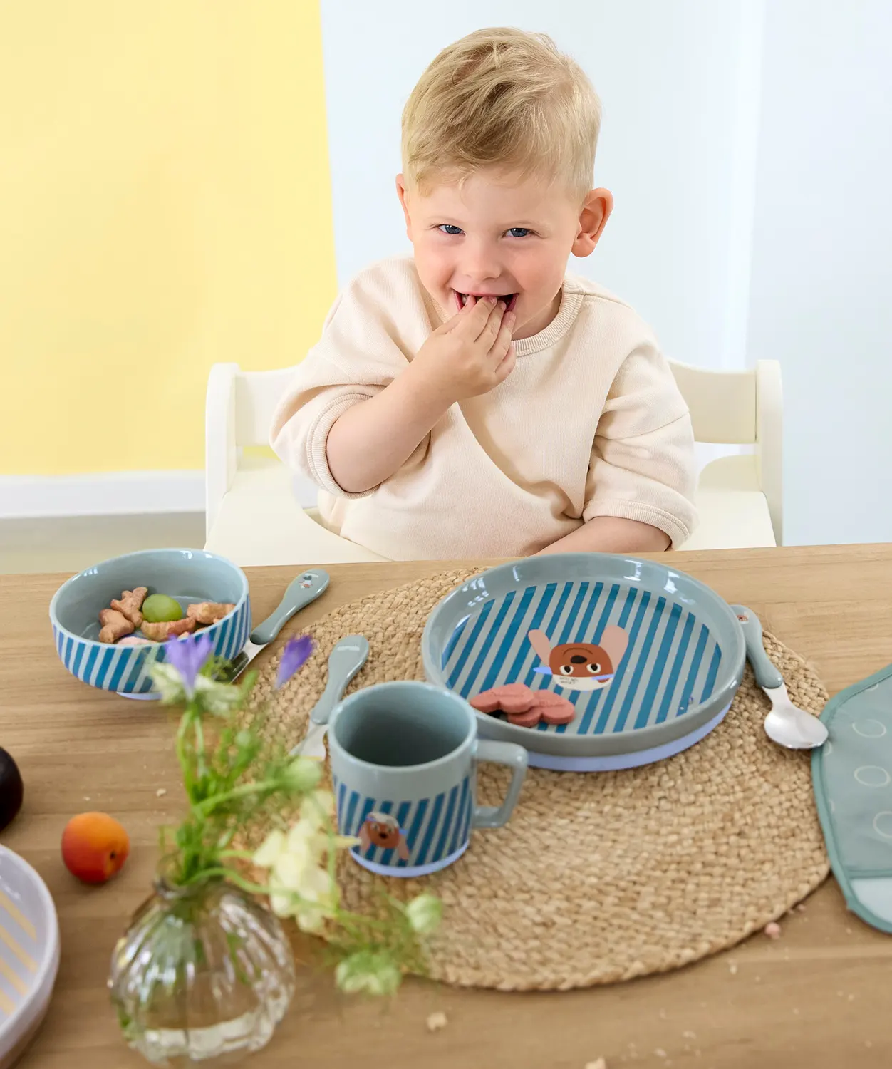 Das schöne Geschirrset von Lässig begleitet deinen kleinen Feinschmecker zuverlässig beim Essenlernen. Das Set enthält einen Teller, eine Schale, einen Becher und einen Löffel.