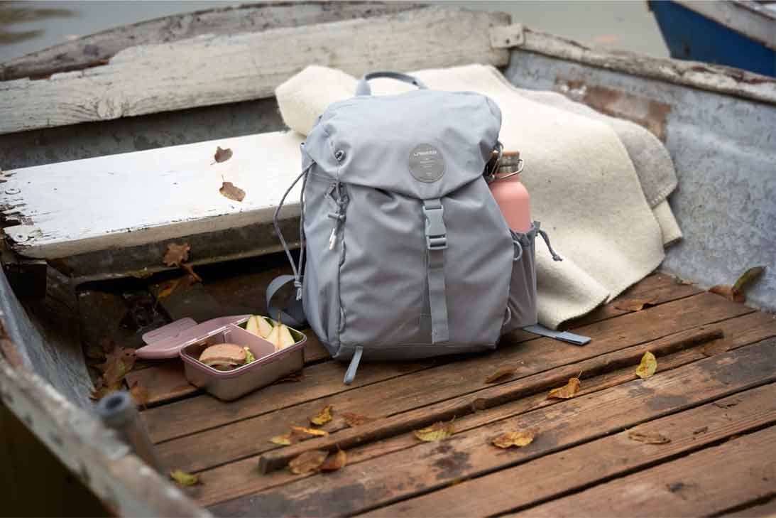Diese coole Tasche ist sowohl Wickel- als auch Wanderrucksack. Mit dem durchdachten Design und Funktionen kannst du und dein Baby schöne Ausflüge ins Grüne machen. Das Material aus dem der Rucksack gefertigt ist, ist wasserabweisend, leicht und trotzdem robust. Außerdem besteht er aus recyceltem Polyester. Im Rucksack gibt es umfangreiches Wickelzubehör und viele Staufächer. So hast du alles, was du unterwegs benötigst - Wickelunterlage, Flaschenhalter, Gläschenhalterung und Utensilientasche. Du kannst den Rucksack dank der Kinderwagenbefestigung ganz einfach an deinen Kinderwagen oder Buggy anbringen. Der Rucksack eignet sich also nicht nur für das Wandern sondern ebenso als Alltagsrucksack.