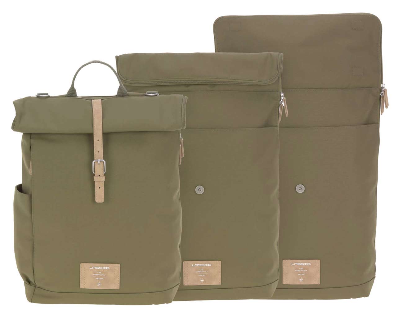 Das trendige und durchdachte Design macht die Lässig Wickeltasche Rolltop zu einem optimalen Alltagsbegleiter.