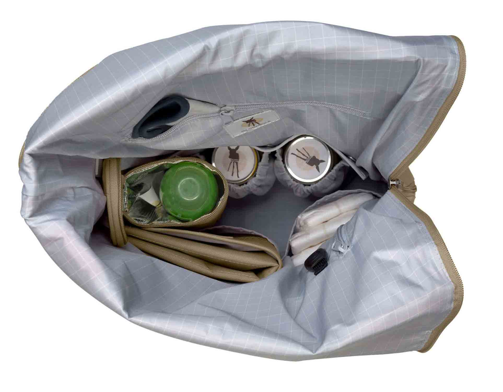 - wasserabweisende Wickelunterlage, Flaschenhalter, herausnehmbare Gläschen Halterung, Utensilientasche