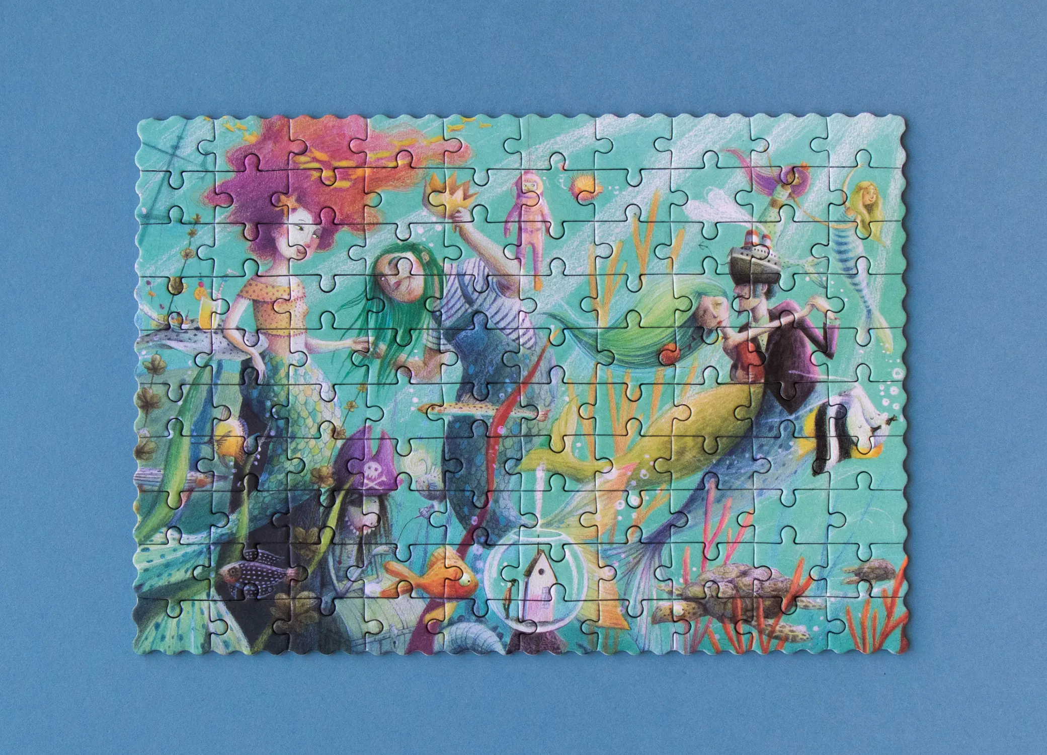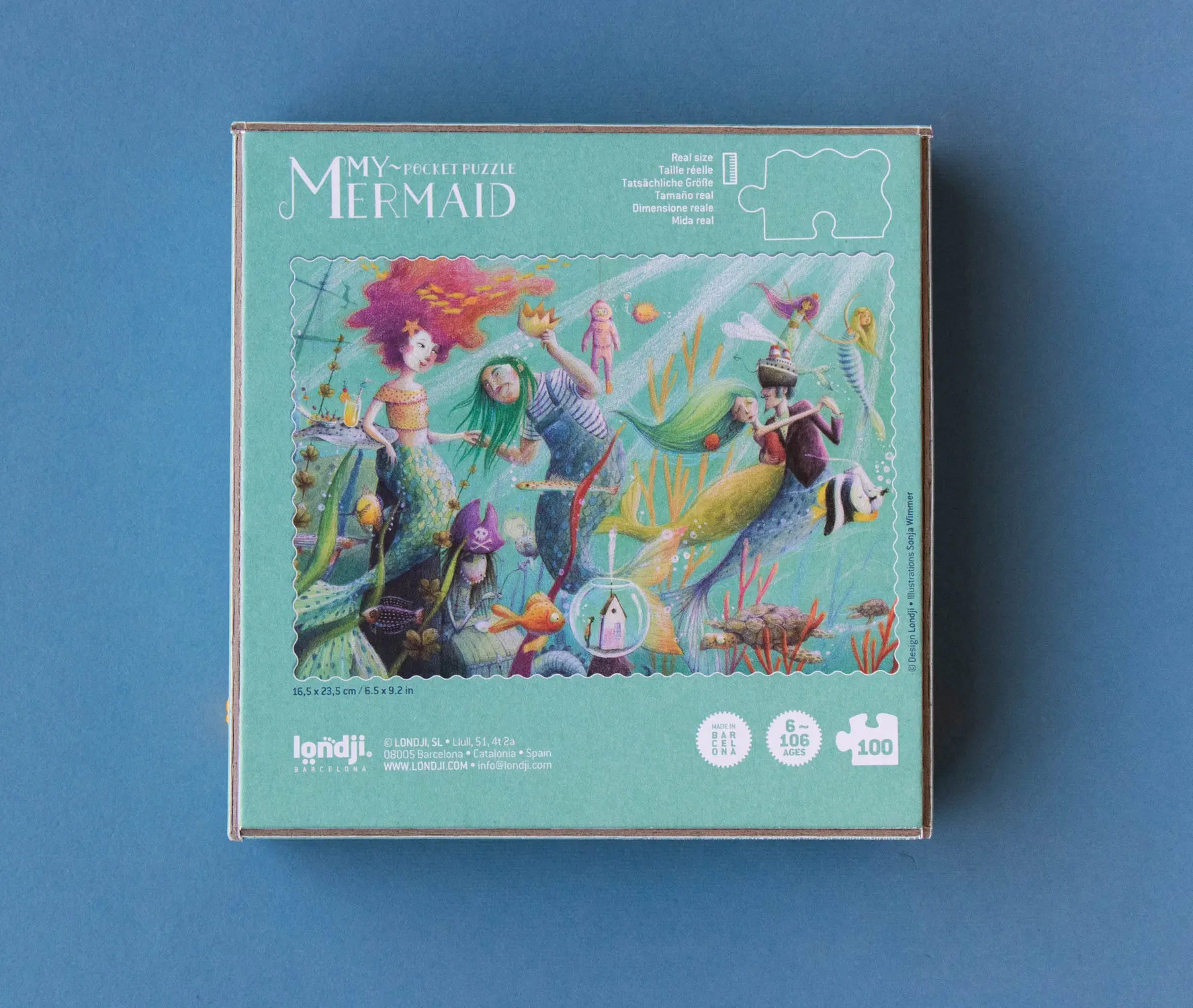 Tauche ein in eine farbenfrohe Fantasiewelt voller Meerjungfrauen, versunkener Schätze und geheimnisvoller Meeresbewohner. Mit dem 100-teiligen Pocket Puzzle „My Mermaid“ von Londji entdecken Kinder eine traumhafte Szenerie, die zum Staunen und Träumen einlädt.