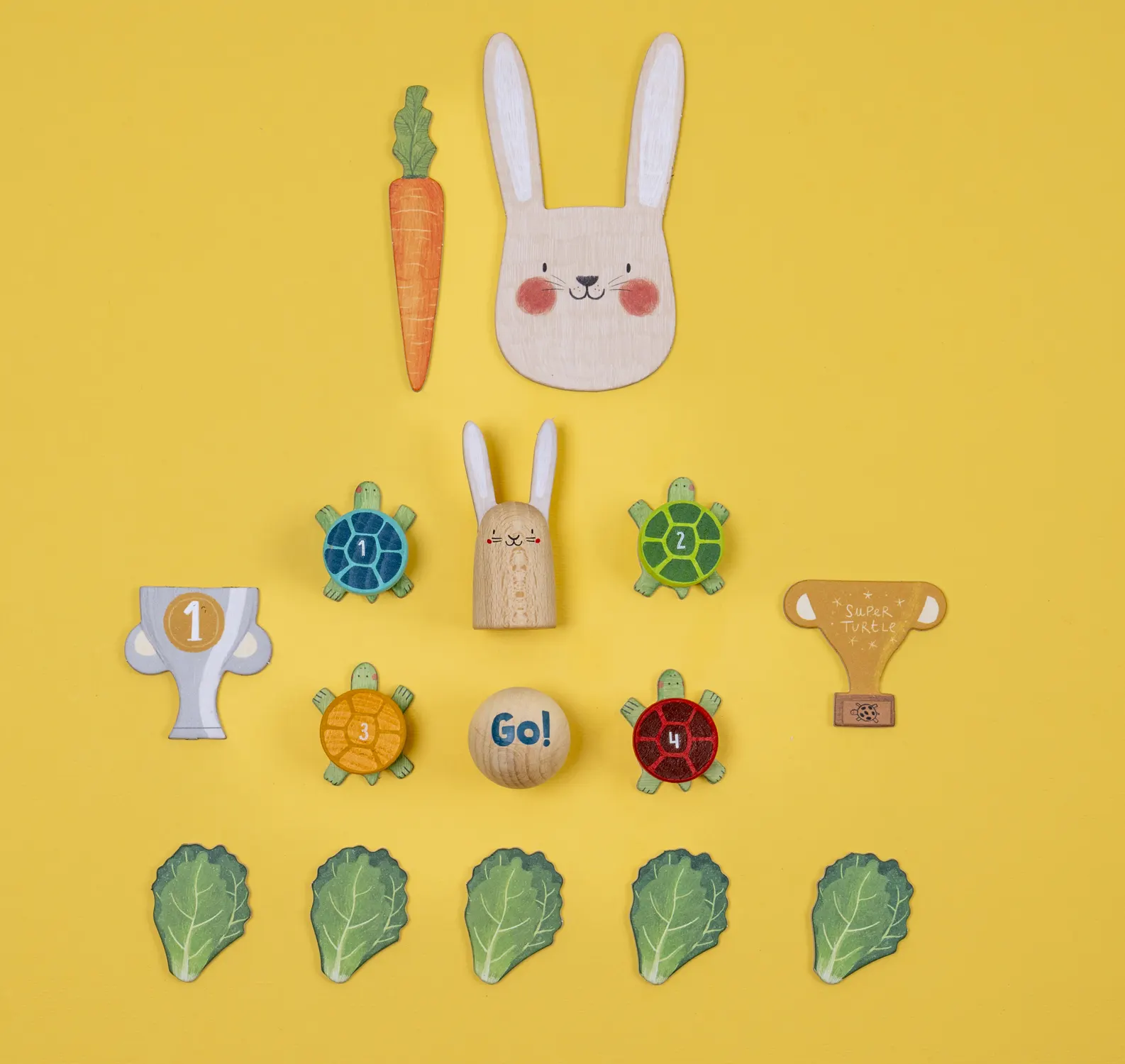 In diesem liebevoll gestalteten Spiel von Londji heißt es: Teamgeist statt Einzelkämpfer! Gemeinsam helft ihr den Schildkröten, die Ziellinie zu erreichen, bevor der flinke Hase sie einholt.