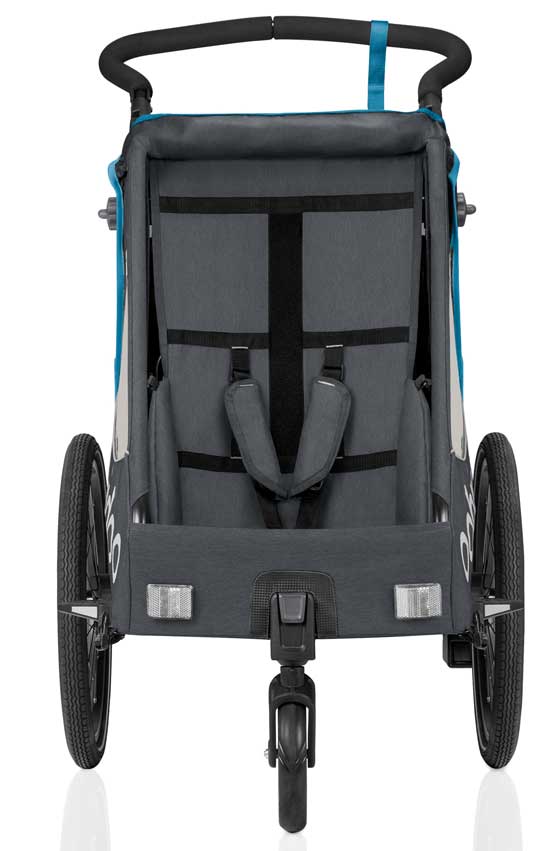 Erhältlich ist der QUPA als Ein- oder Zweisitzer in den Farben Blue, Grey und Lime. Das Highlight: Durch das 360° drehbare Hartgummi-Buggyrad und die Deichsel mit Kupplung wechselst Du binnen kürzester Zeit zwischen Buggy- und Trailer-Modus.Nimm ihn mit, wohin Du willst – denn dank des Blattfeder-Dämpf-Systems macht er auch auf unebenen Wegen eine richtig gute Figur. Er liegt sicher auf der Straße, federt gut ab und bietet so einen in seinem Preissegment besonderen Komfort für Dich und Dein Kind.