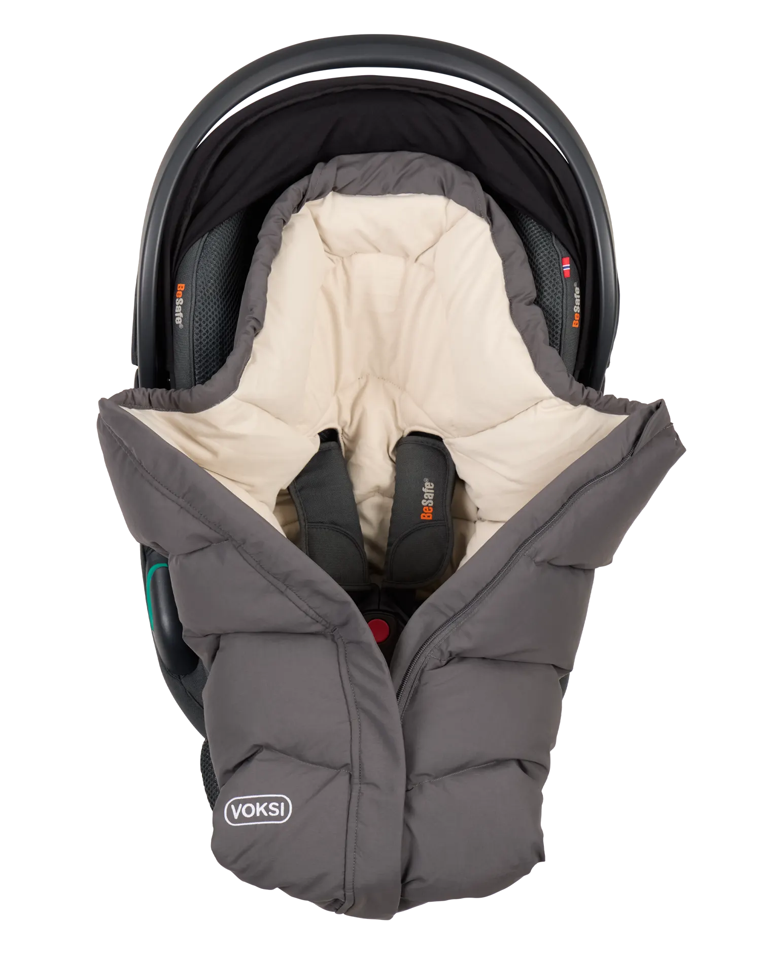 Der Voksi Fußsack Move ist absolut perfekt für den Einsatz in der Babyschale. Die verschließbaren Öffnungen auf der Rückseite ermöglichen es dir die Gurte der Babyschale richtig zu positionieren und festzuziehen. Der Daunenfußsack ist ideal für einen milden Winter. Gefüttert ist er mit einer besonderen Kombination aus Wolle, Daunen und Federn. So hat es dein Schatz immer schön warm. Beim Einsatz des Fußsackes im Kinderwagen hilft das Anti-Rutsch-Material auf der Rückseite. Damit bleibt der Fußsack da wo er hingehört. Auf Höhe des Kopfbereiches ist ein Clip für die Schnullerkette angebracht, so ist das geliebte Accessoires stets griffbereit.