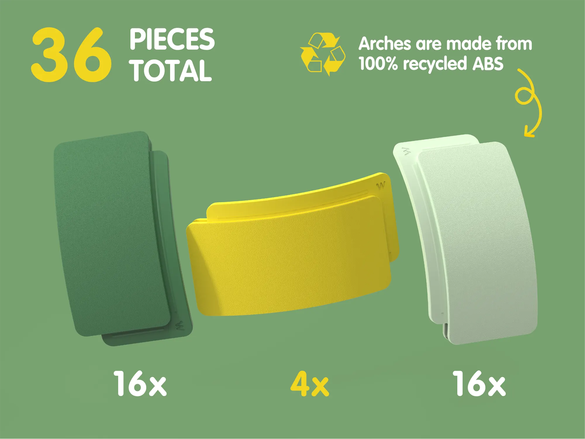 Hergestellt in Europa aus 100 % recyceltem Kunststoff, ist das Set nicht nur sicher und langlebig, sondern auch nachhaltig. Arches wächst mit dem Kind mit und lässt sich vollständig mit allen Waytoplay Straßensets kombinieren – für endlose Bau- und Spielmöglichkeiten.