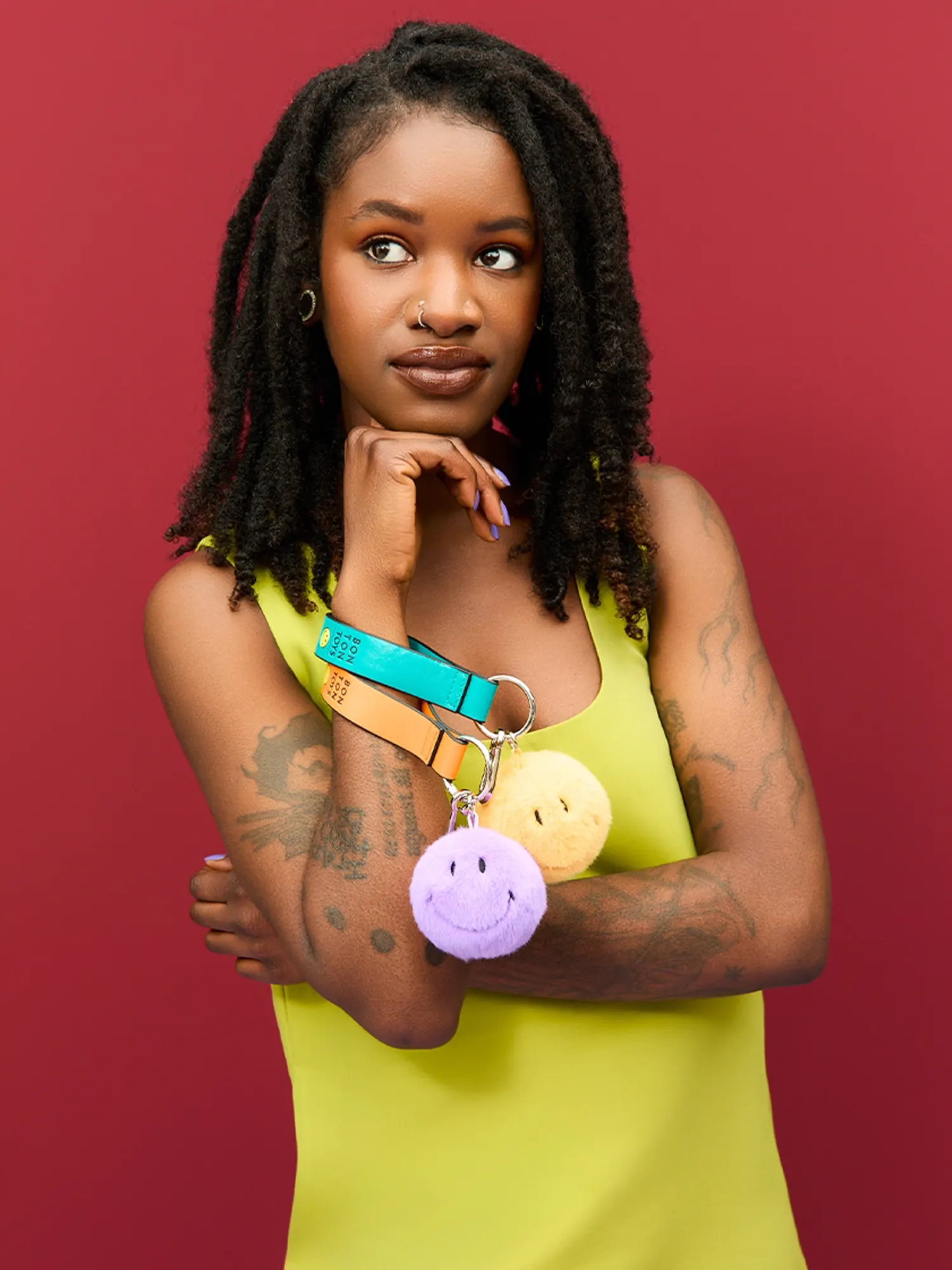 This approx. 7 cm Smiley pendant by Bon Ton Toys is made from super-soft, eco-friendly ECO Fuzzy material. With its cheerful face and vibrant colors, it's the perfect accessory for bags, backpacks, or as a small gift to brighten someone’s day.