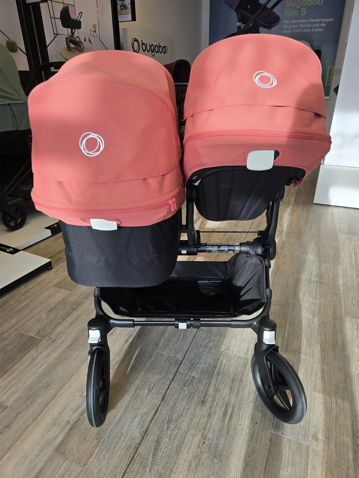 Bugaboo Donkey 5 display model for a newborn and a toddler.