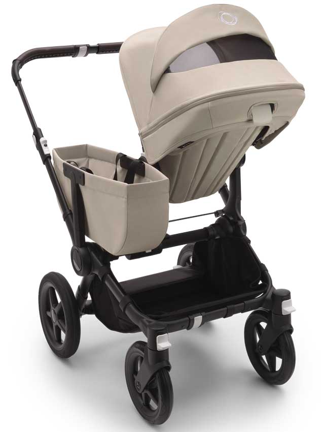 The Bugaboo Donkey 5 Mono is intended for one child. The pram can be used directly from birth thanks to the carrycot, which can later simply be converted to the seat. Next to the carrycot or the seat is a large luggage basket, with which you have even more storage facilities for your purchases. This bag is already included in the Bugaboo Donkey. With its 60cm width, the stroller is only 1cm wider than the classic Bugaboo Cameleon³.