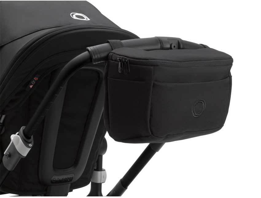 The Bugaboo stroller organizer is available in black, pink and grey melange. It can be attached to the push handle or behind the seat by means of Velcro straps. It is compatible with all Bugaboo strollers.