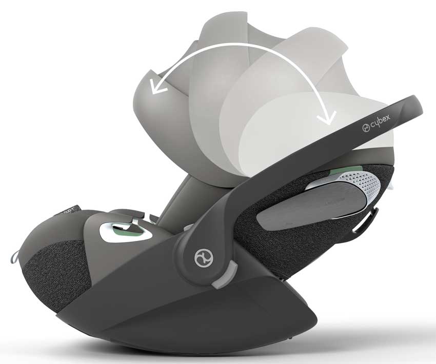 An outstanding feature of the Cybex Cloud T i-size baby car seat is the recline adjustment system. With this system, you can easily and conveniently adjust the infant carrier to a more reclined position to maximize your baby's comfort. This reclined position is ideal for longer journeys as it reduces neck and back strain and gives your baby a comfortable and ergonomic sleeping position.