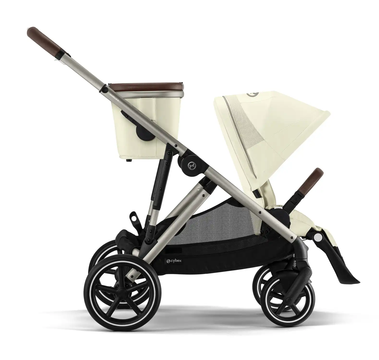 Whether you're expecting your first child, strolling with two kids of different ages, or enjoying double the fun with twins – the Gazelle S is the perfect companion. With over 20 configuration options using Gazelle carry cots, CYBEX infant car seats, or stroller seats, it adapts effortlessly to your family’s needs.