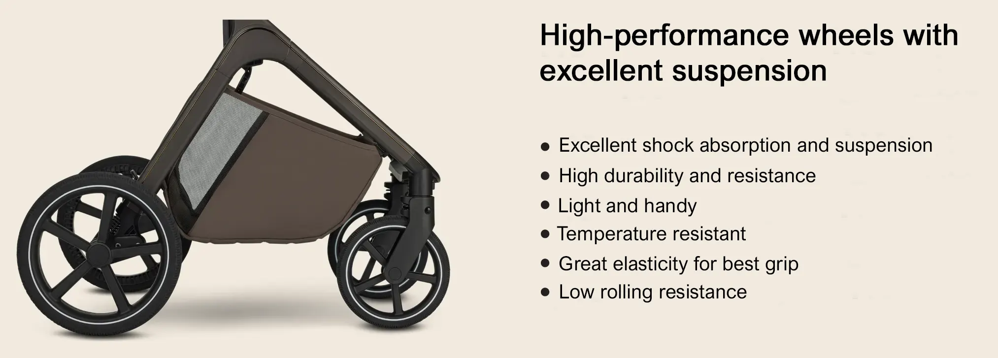 Discover Zoey – the flexible stroller that grows with your child! Thanks to adjustable seat and canopy heights, it offers maximum comfort and flexibility. The cozy, cocoon-shaped carrycot provides a safe and secure place for your newborn, while the heavy-duty wheels ensure a smooth and comfortable ride on every journey. This makes Zoey the perfect, hassle-free choice for you and your baby.