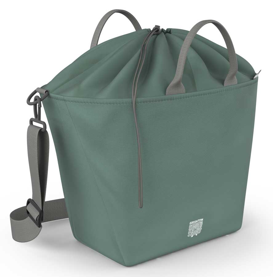 The 100% green shopping bag fits perfectly to the Greentom buggy and offers next to the classic shopping basket, additional space on the stroller. The shopping bag is attached to the hooks on the back of the buggy and can be worn comfortably thanks to the shoulder strap for shopping and after the walk.