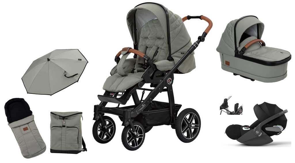 As a 3 in 1 stroller set you have the popular Cybex Cloud T i-Size baby seat and an adapter included. The main feature of the Cybex baby seat is the reclining function, which you can use on the stroller. The adapter allows you to attach the Cybex Cloud T to the stroller with just one click. This means your baby can continue to lie ergonomically in the baby seat after the car ride while shopping or going for a walk.