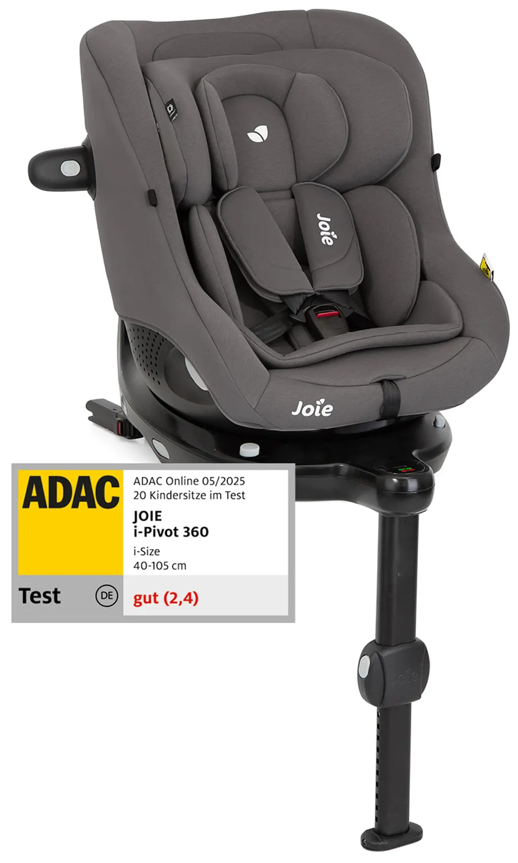 Immediately after birth, or after growing out of the baby seat, the Joie i-Pivot 360 is the perfect seat if you want to have the choice: Either your little explorer goes on tour exclusively rear-facing until he is 105 cm tall or a maximum of 21 kg weighs. Or optionally forward-facing – from 76 cm and at least 15 months. With just one hand you can rotate the i-Pivot 360 gently and easily through 360°. And of course your child only goes on tour with the highest level of safety: newborn insert that offers perfect support even for the smallest ones, additional attachable side impact protection element, TriProtect headrest with patented IntelliFit memory foam for optimal protection of the head and neck area, 5-point belt system that grows with the child and an ISOFIX base station that indicates if the seat is not installed correctly.