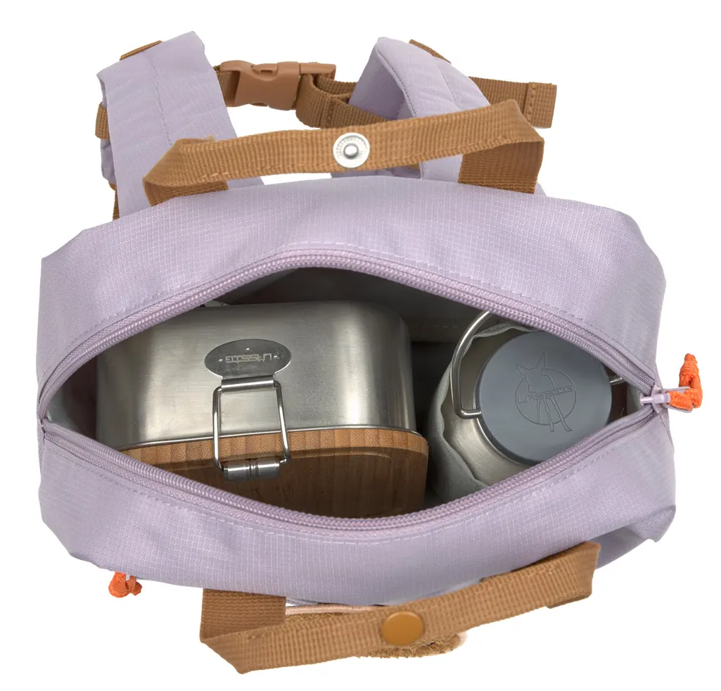 The Mini Square backpack comes with great features for your mini. The large main compartment has space for mud pants and a lunch box. The drinking bottle can also be stored inside in the provided loop. The outside pocket offers storage space for the wallet and small treasures such as candy.