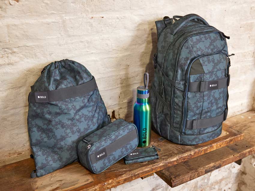 The cool pencil case from the BOLD series from Lässig offers plenty of space for pens, fountain pens, erasers etc. In the main compartment there are two compartments with a holder for pens, fountain pens or pencils, as well as another compartment for the set square, timetable or change. This means the pencil case can easily keep order in your sweetheart's creative school life.