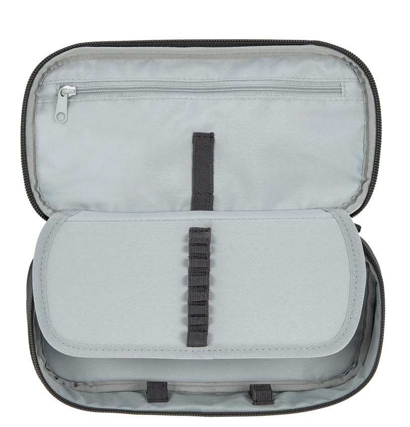 The pencil case is a must-have in the Bold collection and relies on sustainability, thanks to recycled polyester and the absence of animal components (PETA-Approved Vegan).