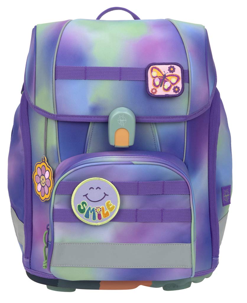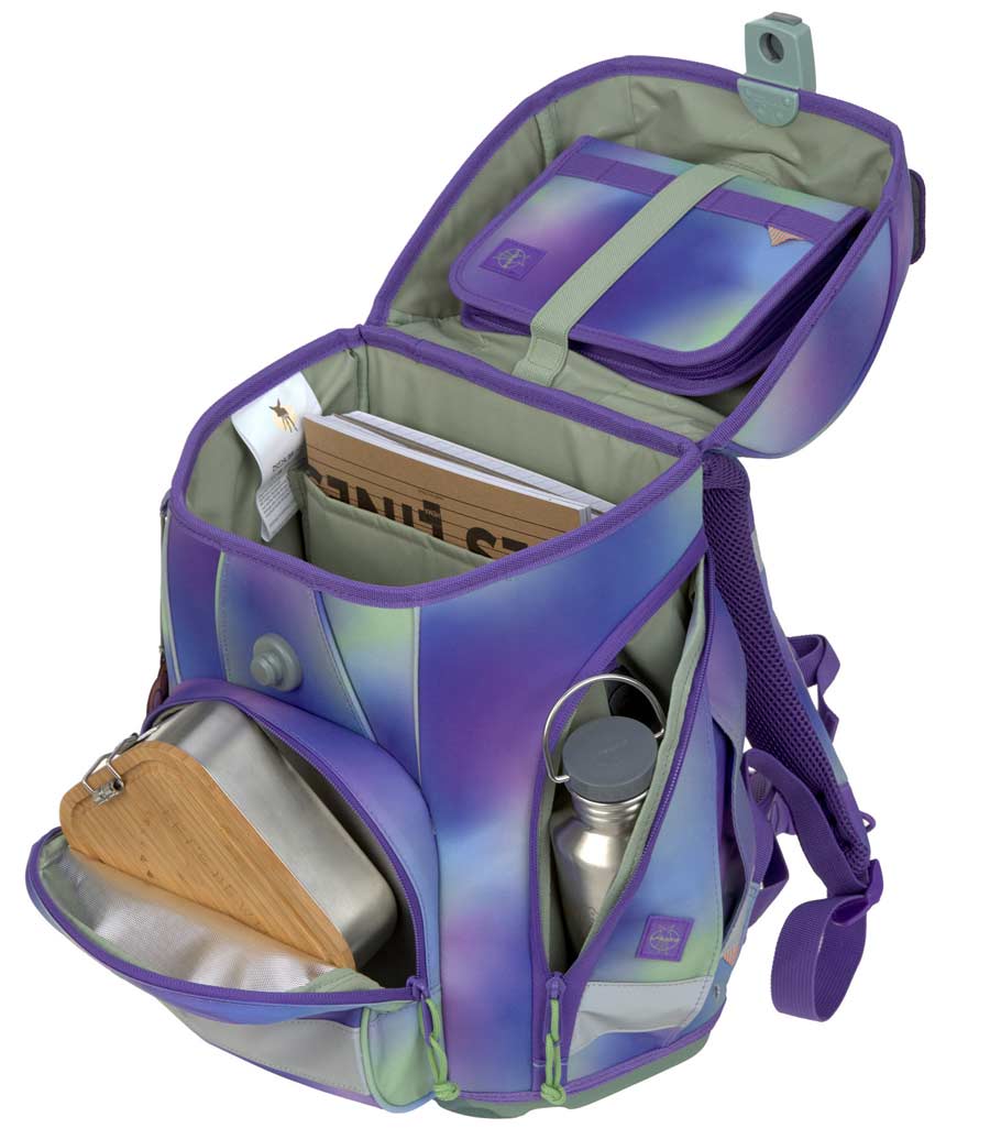 The compact shape of the satchel provides plenty of space. The storage space of the satchel is well thought out: book compartment, wet compartment for drinking bottle, side pocket with key finder, insulated front pocket and jacket loop on the front. With additional patches and textile stickers, your child can beautify their satchel individually.