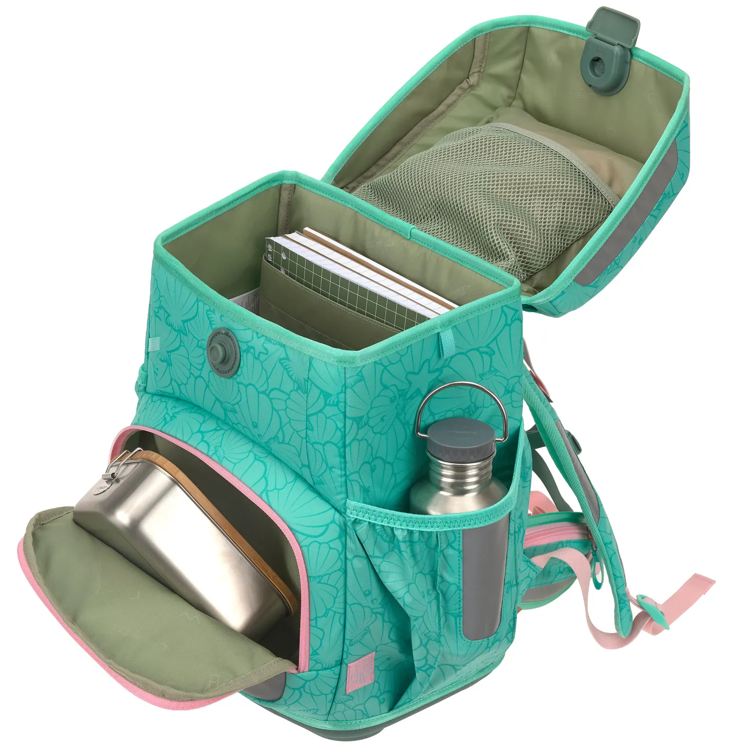 Despite its light weight, the Light Unique offers plenty of well-designed storage space. A large book compartment, a pocket with an elastic band for a water bottle or umbrella, a side pocket with a key finder, an insulated front pocket, and a practical attachment loop under the lid make this school bag a clever companion for everyday school life. With additional patches and fabric stickers, your child can personalize their schoolbag.
