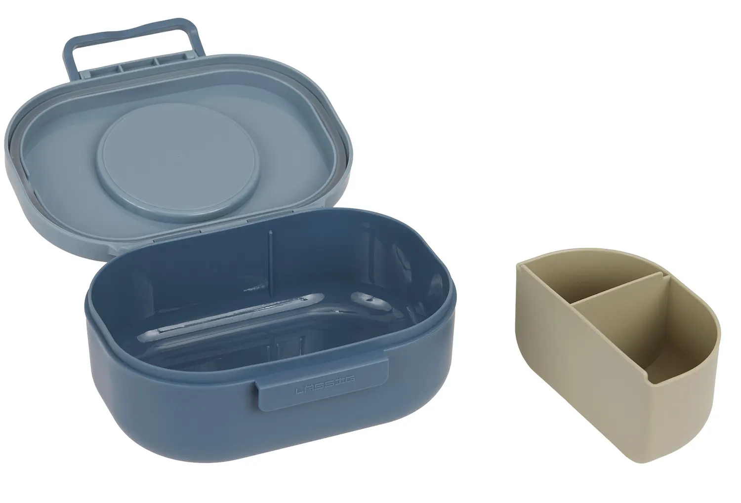 Thanks to its compact, rounded shape, the Lässig Style & Snack lunch box fits in a daycare bag, school bag, or backpack.