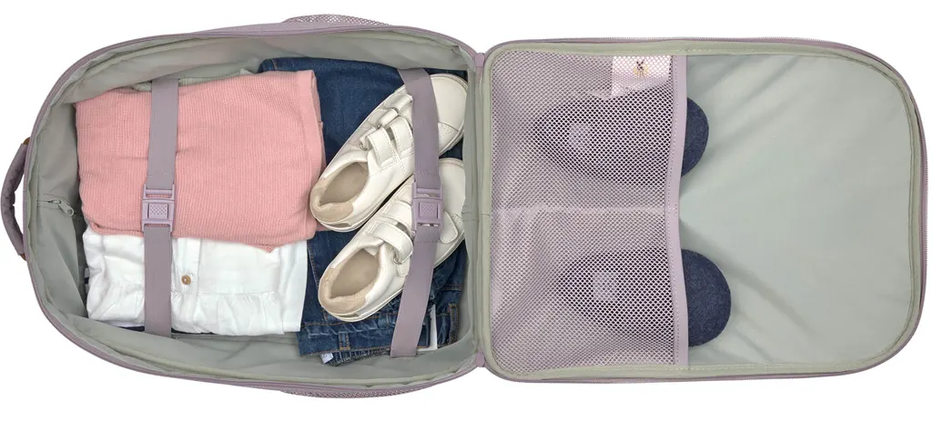 Off on vacation! With the Lässig children's trolley, your child has everything that it needs. Thanks to the clear system, clothes and toys can be accommodated and also a shoe bag is included in the delivery. This can also be used as a laundry bag. Due to the packing straps, the luggage will not slip and the journey can begin. The additional outer compartment on the front provides space for everything that needs to be quickly at hand or no longer fit into the large compartment.