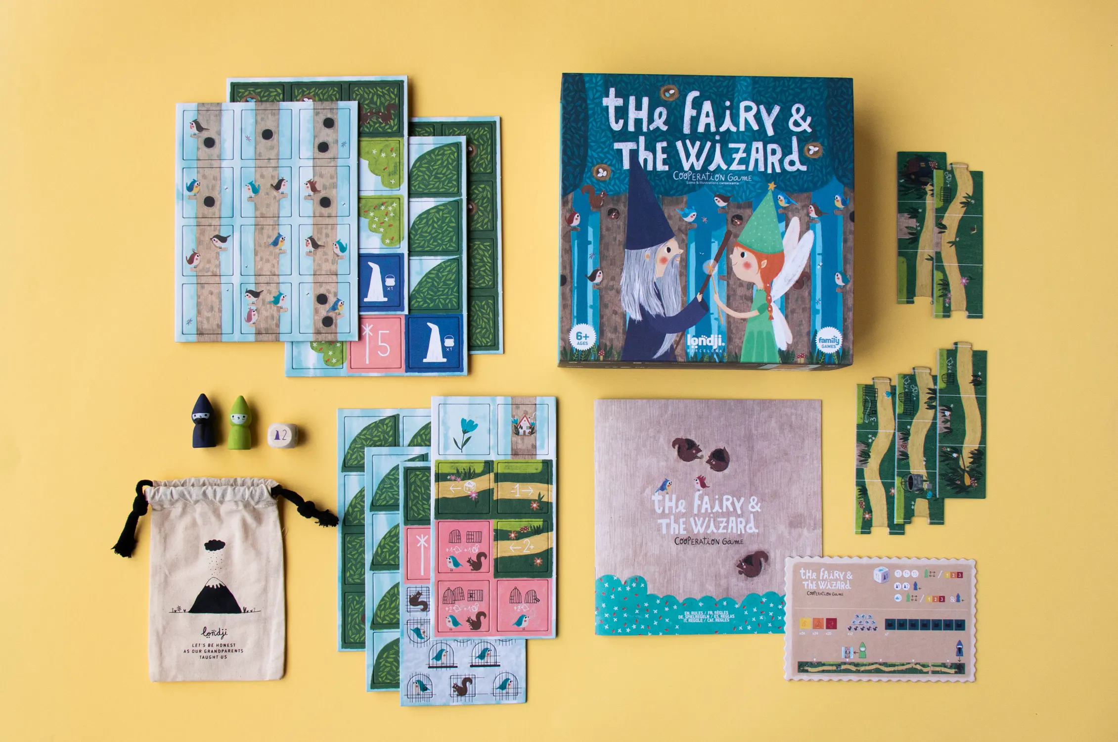 Step into a magical fairy-tale world with “The Fairy & The Wizard” by Londji, a beautifully illustrated cooperative family board game. Once upon a time, a good fairy wanted to create a forest where every animal could find a safe home. But the evil wizard had other plans and tried to trap the animals in the forest. Work together to help the fairy stop the wizard!