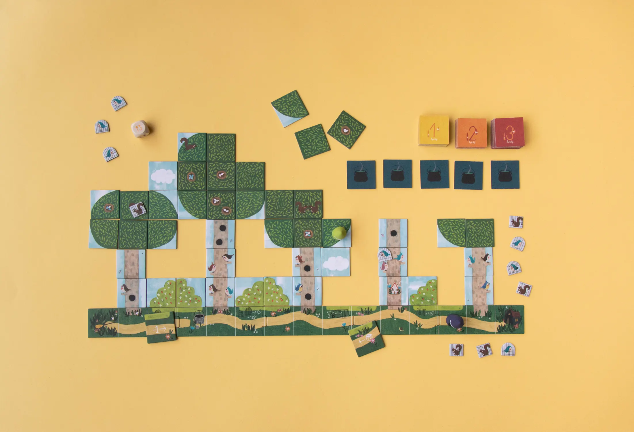 The goal of the game is to build the forest together as a team before the wizard completes his spells. The game is played in rounds, encouraging players to communicate, plan strategies, and make decisions collectively. If the forest is completed, all the animals are freed automatically, and the fairy and animals win the game!