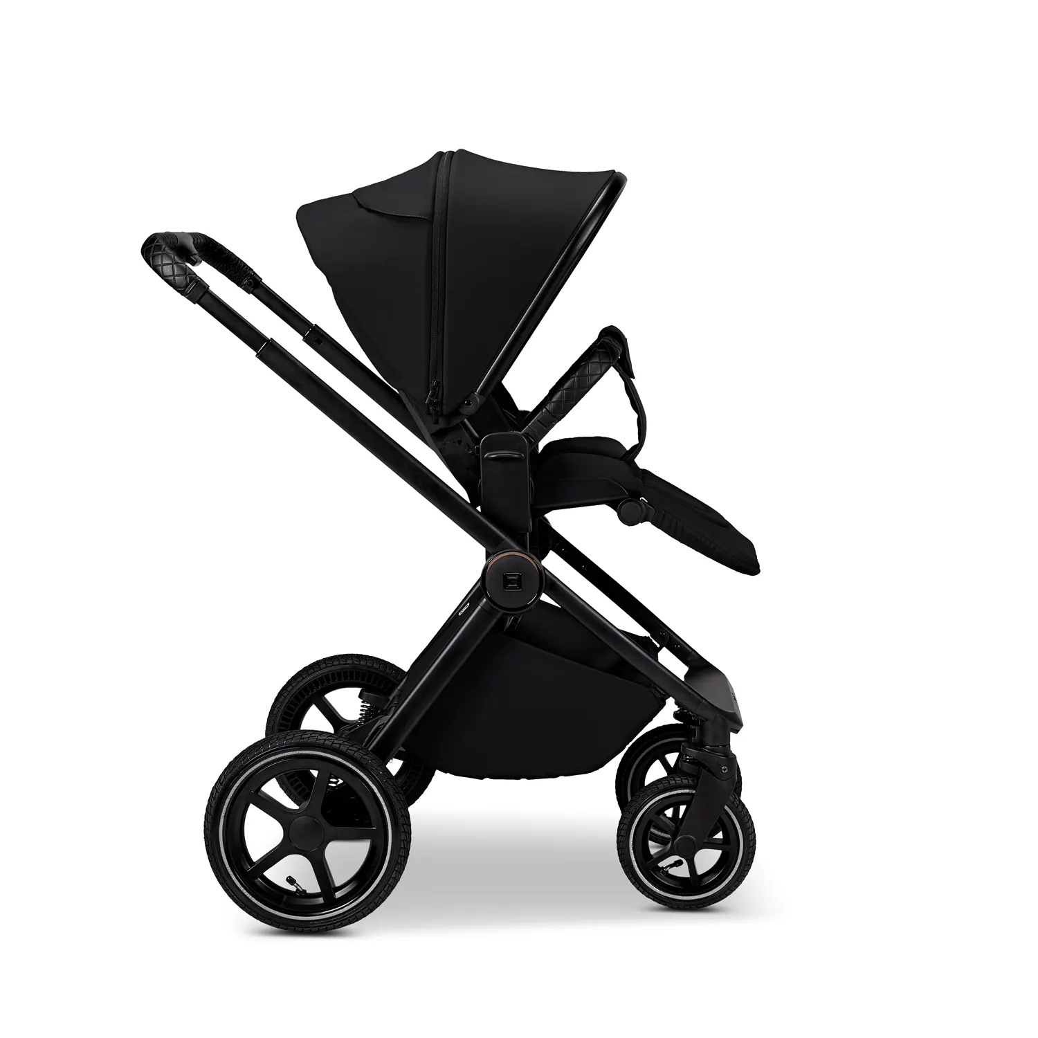 With its large air-filled tires and an extra-wide, expandable shopping basket, you’re always on the move with everything you need right at hand. The practical height adjustment for the carrycot and toddler seat works without adapters, making it easy to adjust the stroller to your height and your child’s needs.