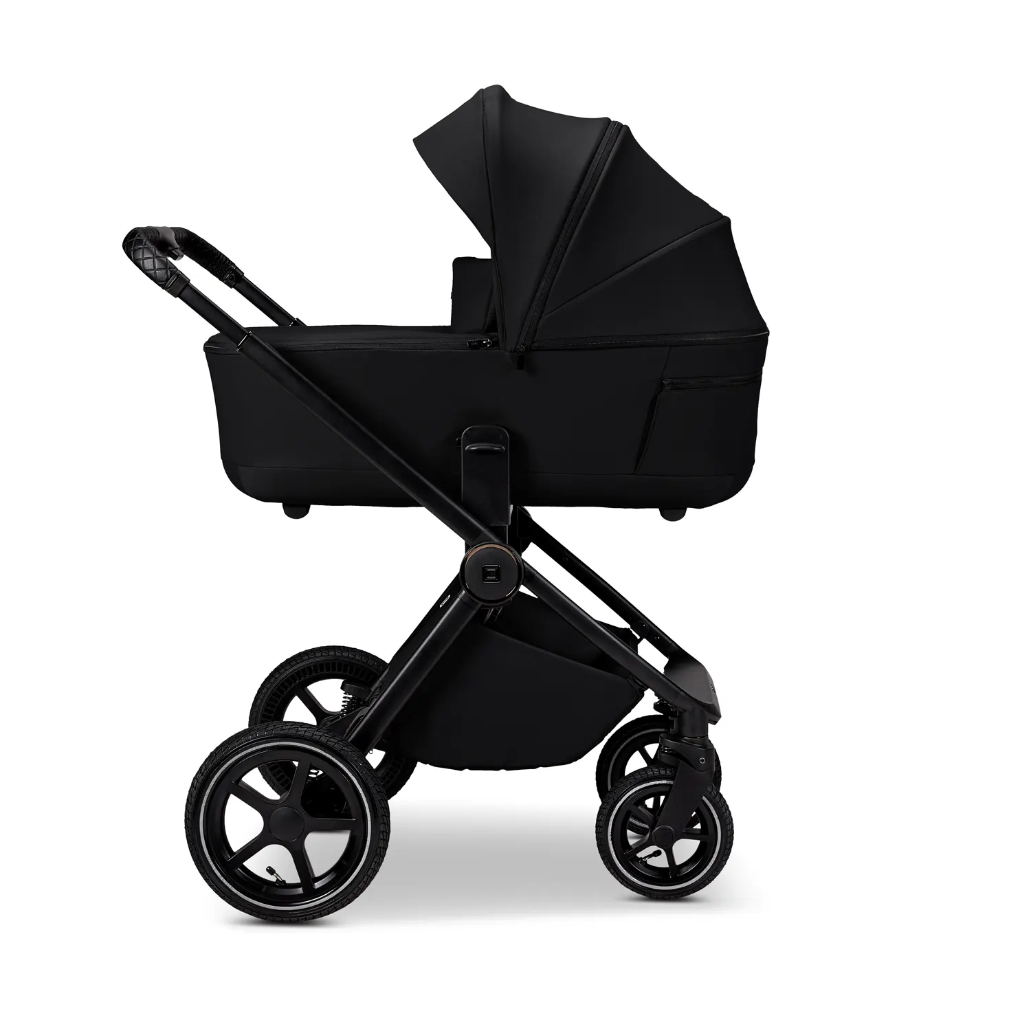 New: Fully fabric-covered carrycot with elegant premium material