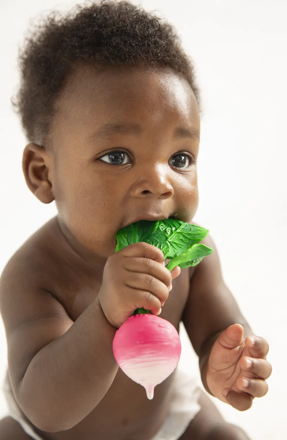May we introduce the world's healthiest teething aid trio: Ramona the Radish, Keiko the Edamame, and Anita the Banana.