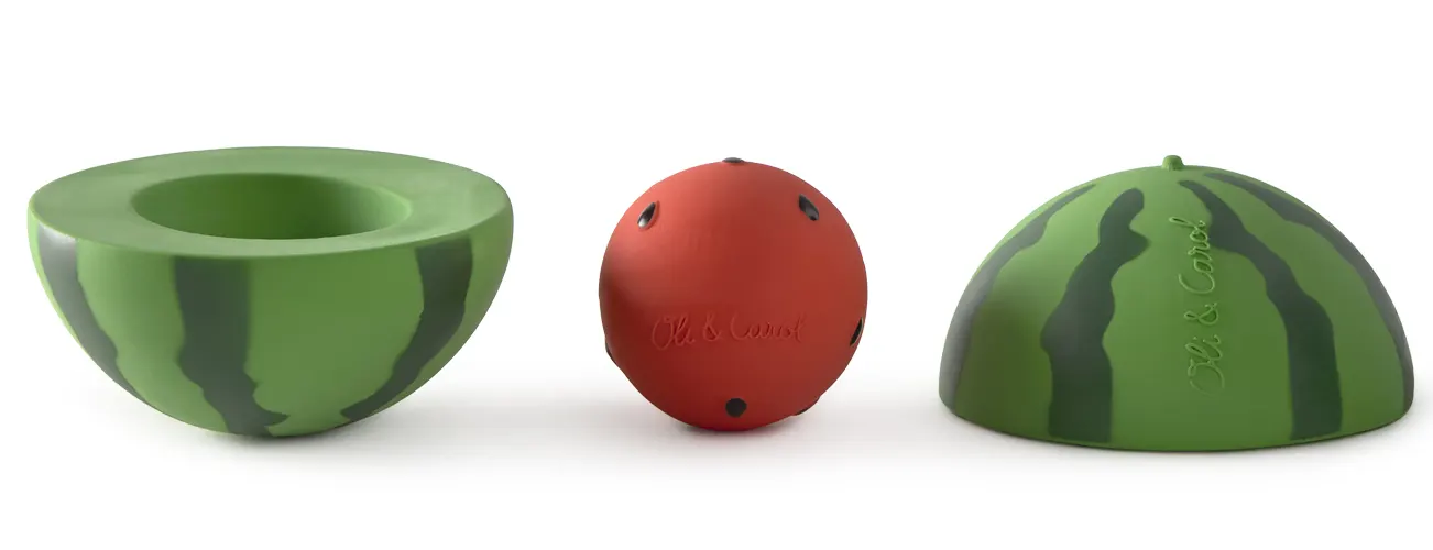 May we introduce: Wally, the watermelon! Wally is a real all-rounder, as she can be used as a stacking game, as a rattle, and as a bouncy ball.