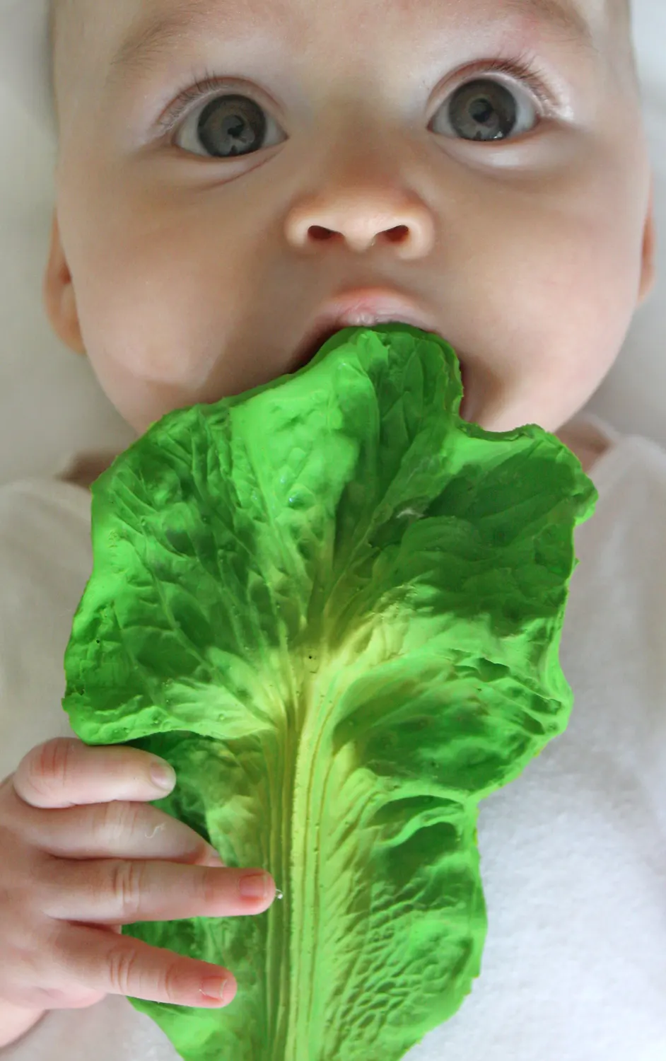 May we introduce: Kendall the Kale! Kendall is used as a teething toy, teething aid, and bath toy.