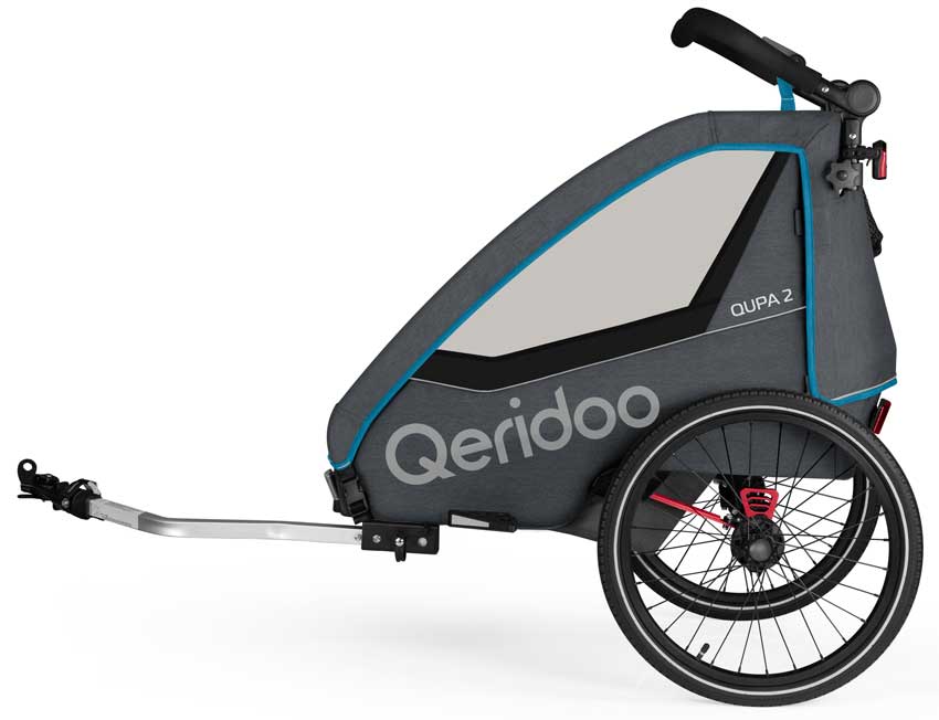 The QUPA 2 is available as a two-seater in the colors blue, gray and lime. The highlight: thanks to the 360° rotatable hard rubber buggy wheel and the drawbar with coupling, you can switch between buggy and trailer mode in no time at all. Take it with you wherever you want - because thanks to the leaf spring damping system, it also makes uneven ground Because of a really good figure. It is safe on the road, cushions well and offers a special level of comfort for you and your child in its price segment.