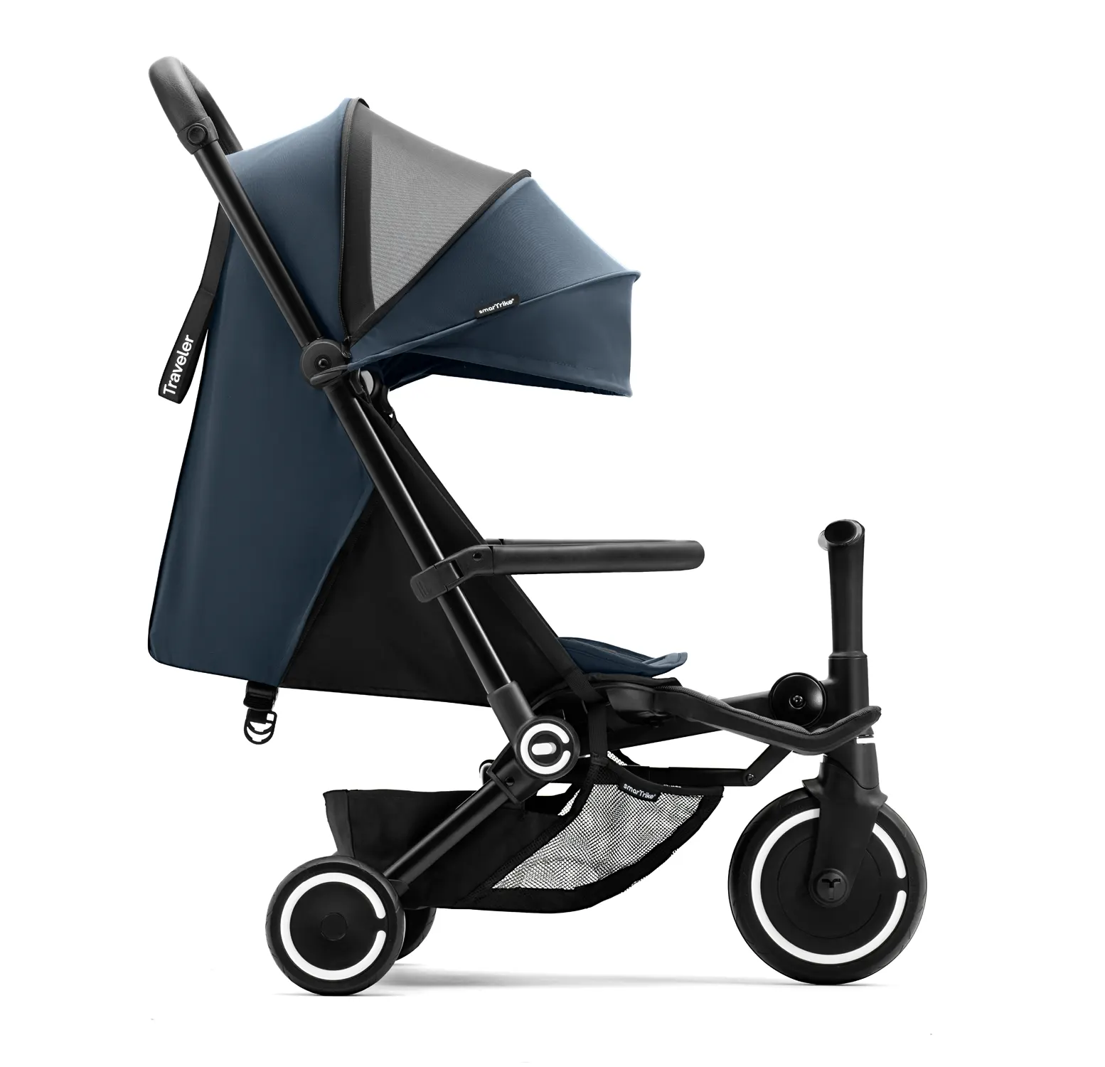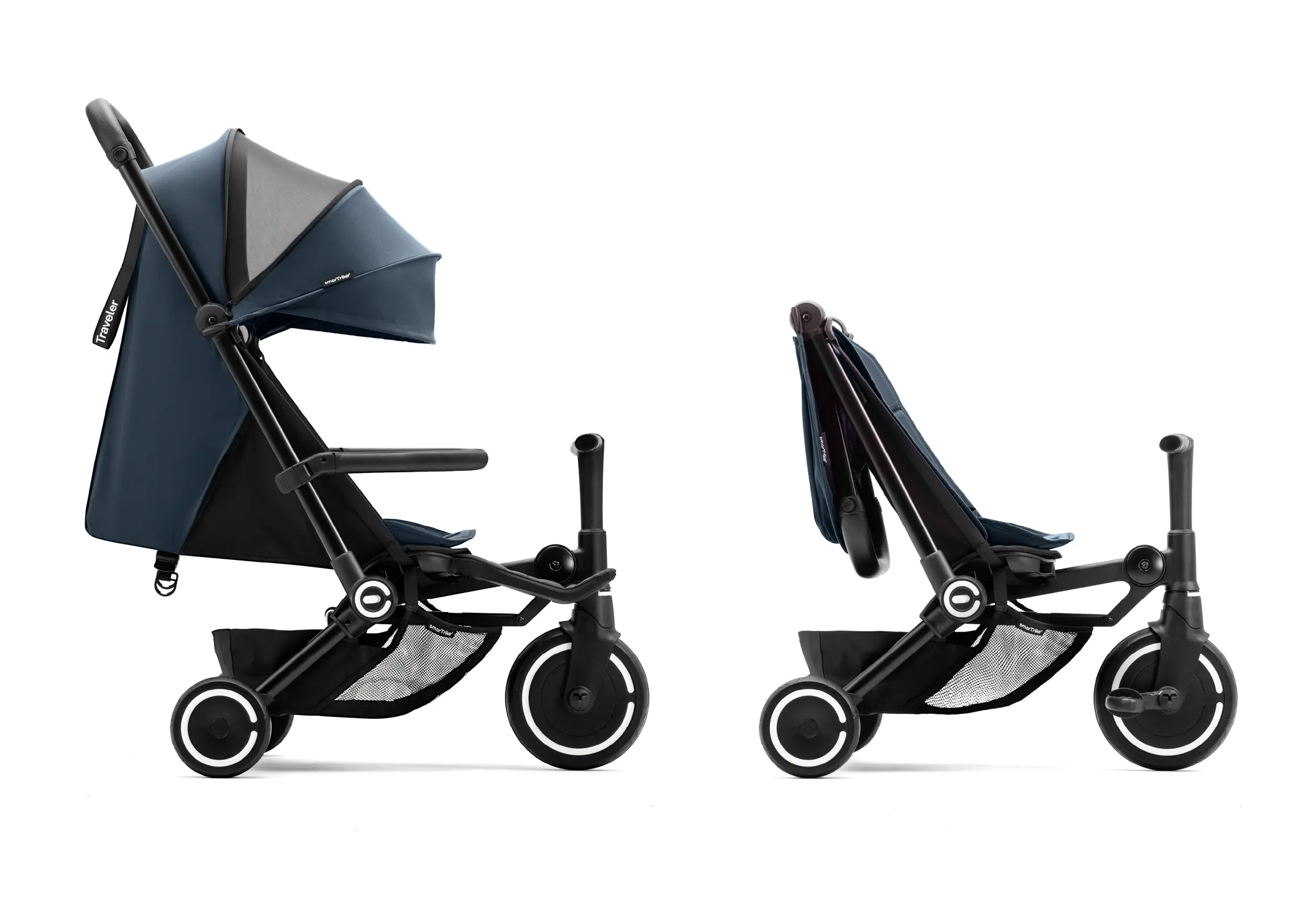 The SmarTrike Traveler combines a baby stroller, parent-guided tricycle, and independent trike in one product. A perfect long-term solution for families looking for versatility and durability.