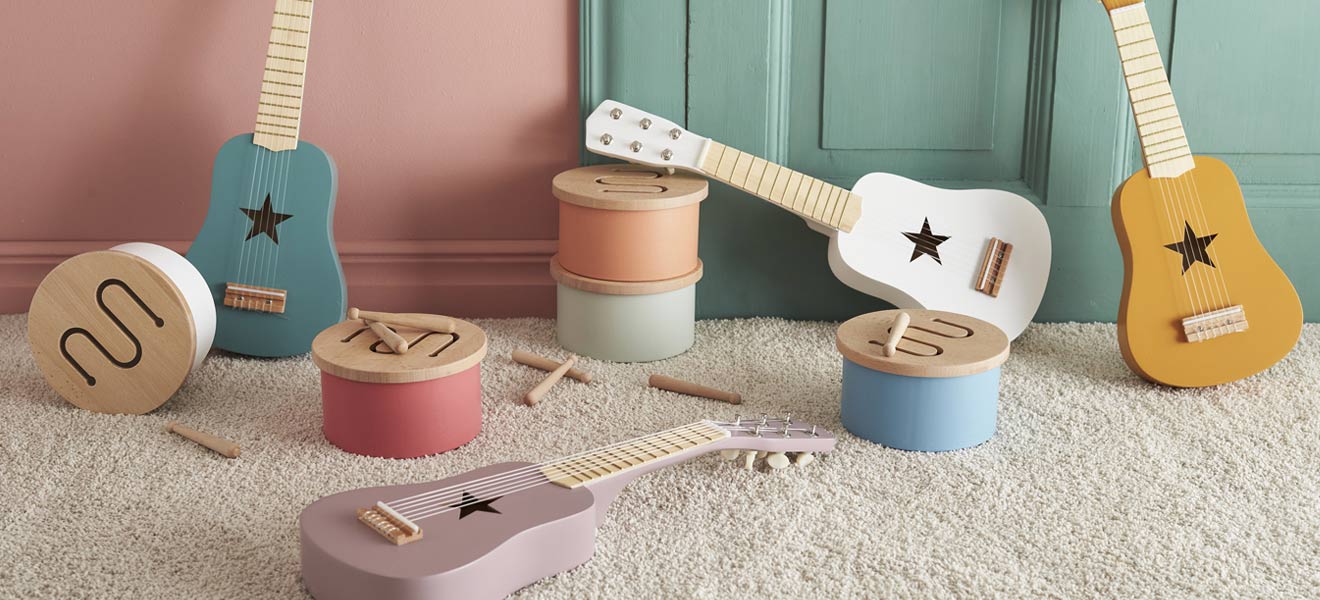 Clear the stage for drums, guitars or wooden drums. Musical toys are not only a lot of fun, they also promote child development in many ways. Motor skills, ear training, the sense of rhythm but also personality development and creativity of your favorite will be trained.